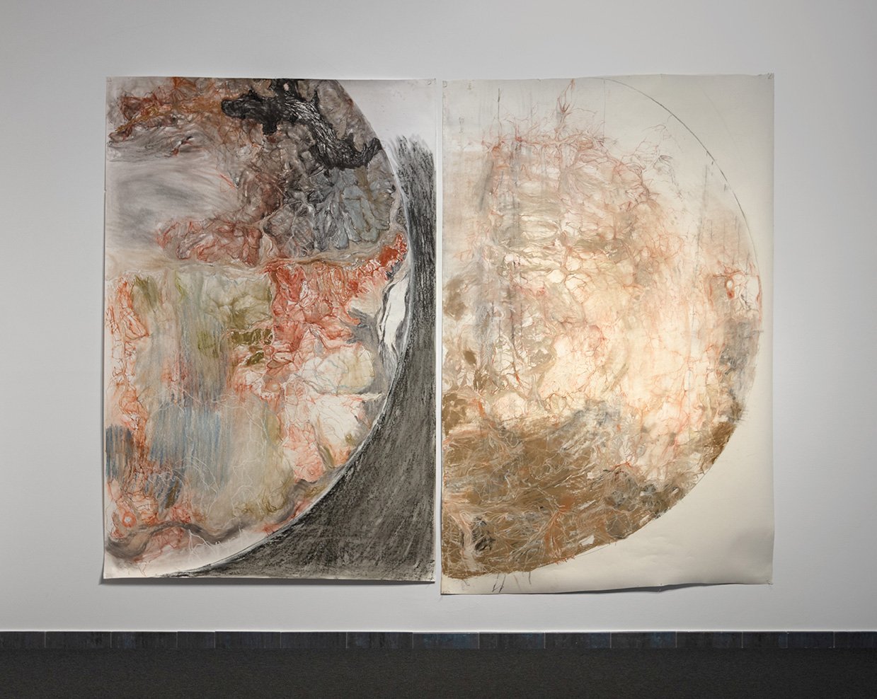 pencil, pastel drawing, diptych; 233 x 150 cm each