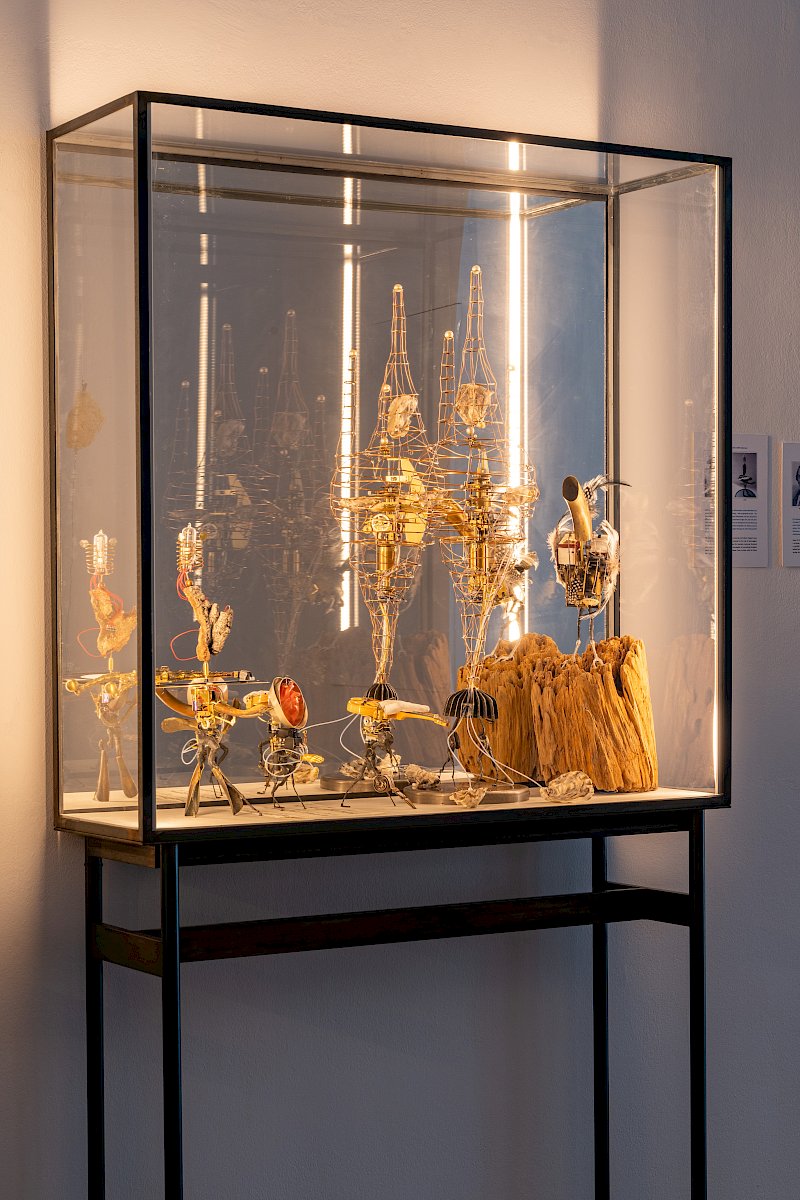 metal, wire, glass, vinyl record, cork, 42 x 13 x 28 cm