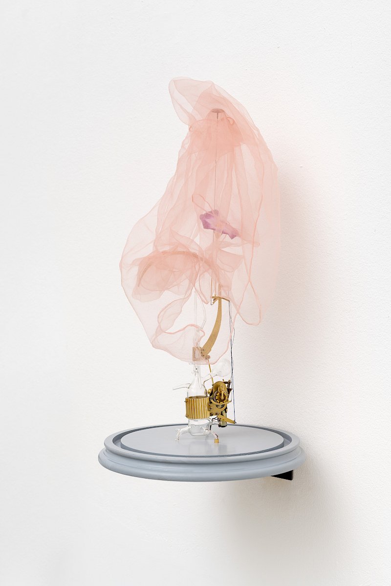 Brass, wire, silk, borosilicate glass, chiffon, 51 x 22 x 22 cm