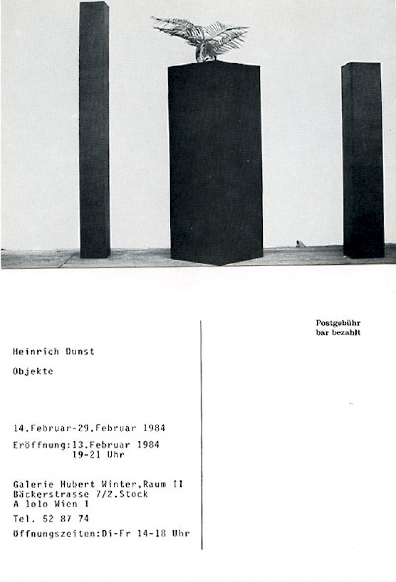 Einladungskarte "Heinrich Dunst", Galerie Hubert Winter, Sonnenfelsgasse 8, 1984.