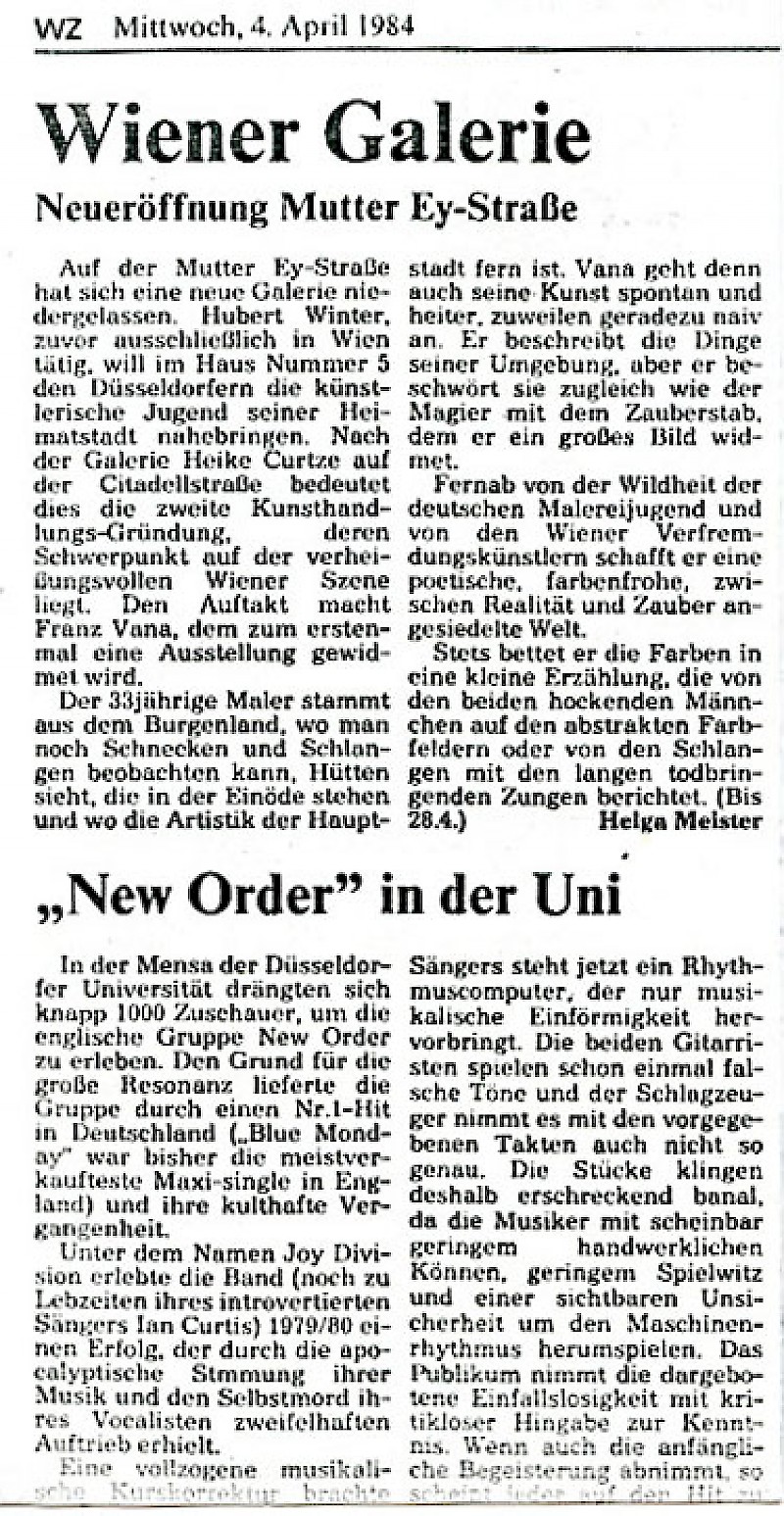 Eröffnung der Galerie Hubert Winter, Düsseldorf (als GbR mit Cora Hölzl) mit Franz Vana.