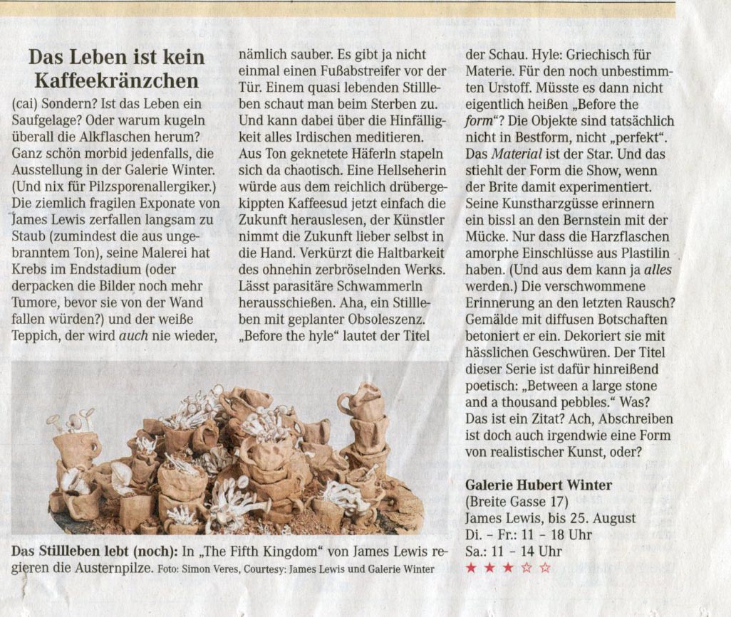 Before the hyle, James Lewis’ first solo exhibition at Galerie Hubert Winter, establishes a dialogue with this suppressed and obscure twin of subjectivity; it addresses a state before Logos, before the naming of things, a state of chaos, of disintegration.