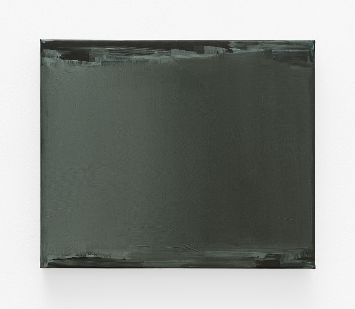 The palette of her new paintings, mostly opaque, is hounded by light and darkness truly in the tradition of Western paintings. Horizontal screen-like formats provide the corpus. The surface’s physicality differs from one painting to the other. The enigmatic paint is applied pure and abstract. Painting as a fact. Non-objective works become objects that hold timeless transcendence. Nancy Haynes creates alterity through the compression of light. Looking at her paintings and seeing the movement of shades it is obvious that nothing is in place – an immanent renewed deconstruction in each work, a metaphysical immediacy.
