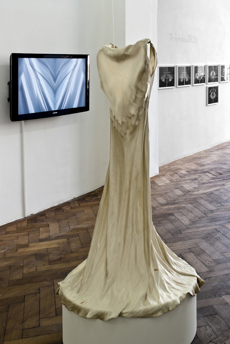 “The AmbassaDRESS 1977/1980” is formed of photographs, drawings and a video, and an installation. The variety of media used in the work is the product of an approach that allows the differentiation of the audience`s point of view. Although the dress is the centre of the work, Nil Yalter refrains from repeating the major-dominant narrative that invariably ascribes “female” identity a marginal position, as a figure long not issued with legitimate representation, she in fact point towards, exhibits and criticizes phallocentric power structure.