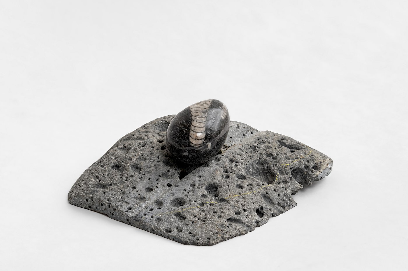 Lava stone and black egg with natural grain, 16 x 14 x 6 cm